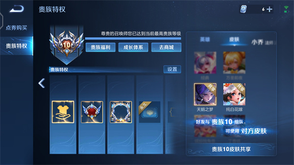 3、抵达高级别的贵族时,玩家能够分享自己皮肤给自己的朋友进行使用。