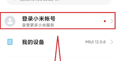 2、然后在设置中,点击选择“登录小米账号”,