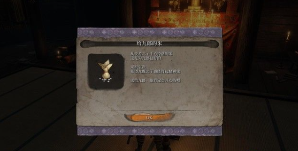 4、将柿子给假皇子后会获得道具给九郎的米。