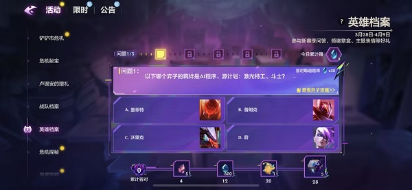金铲铲之战英雄档案答案是什么呢?参与新赛季问答,玩家可以领取徽章盒、主题表情等好礼,很多小伙伴还不知道这个活动的答案是什么,那么接下来就跟着小编一起来了解一下《金铲铲之战》英雄档案答题答案大全。